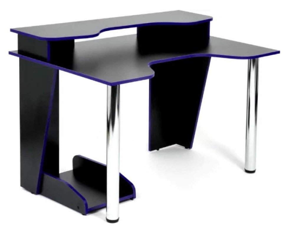 3. Strike-1 (120) NEO – фигурная, с закругленными углами столешница из ЛДСП на хромированных регулируемых опорах, дополнительная конфигурация (разъемы под кабель-каналы, подставка под монитор, ниша для системного блока);